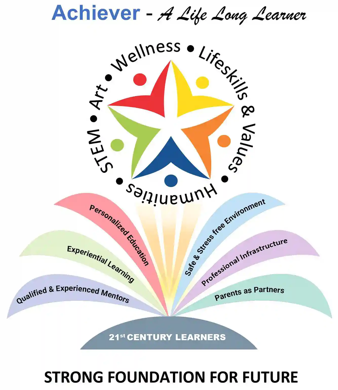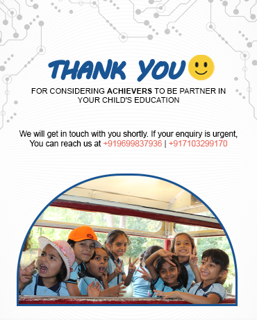 Since 2008, The Achievers School has been dedicated to preparing children for today and the ever-evolving future. Our CBSE curriculum coupled with unique Experiential learning methods and specialized 21st-century skill courses such as Entrepreneurship, Financial Literacy, Design Thinking, and Artificial Intelligence, ensures that every child receives a personalized education from playschool to nursery, and from class 1 to class 10 thus, nurturing multiple skills to their full potential.